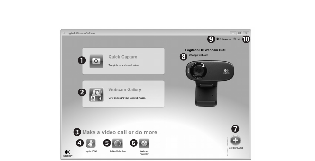 Navigácia v softvéri webovej kamery Logitech